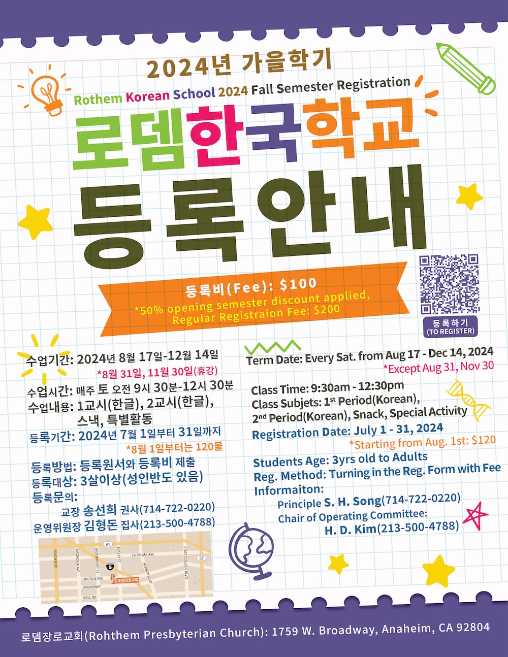 [행사안내] 로뎀한국학교 2024년 가을학기 등록안내 페이지 정보 Writer : 로뎀장로교회 Date : 2024-07-07 View : 421 목록 본문 2024 로뎀한국학교 등록안내 이전글로뎀한국학교 2025년 봄학기 등록안내 24.12.05 LIST