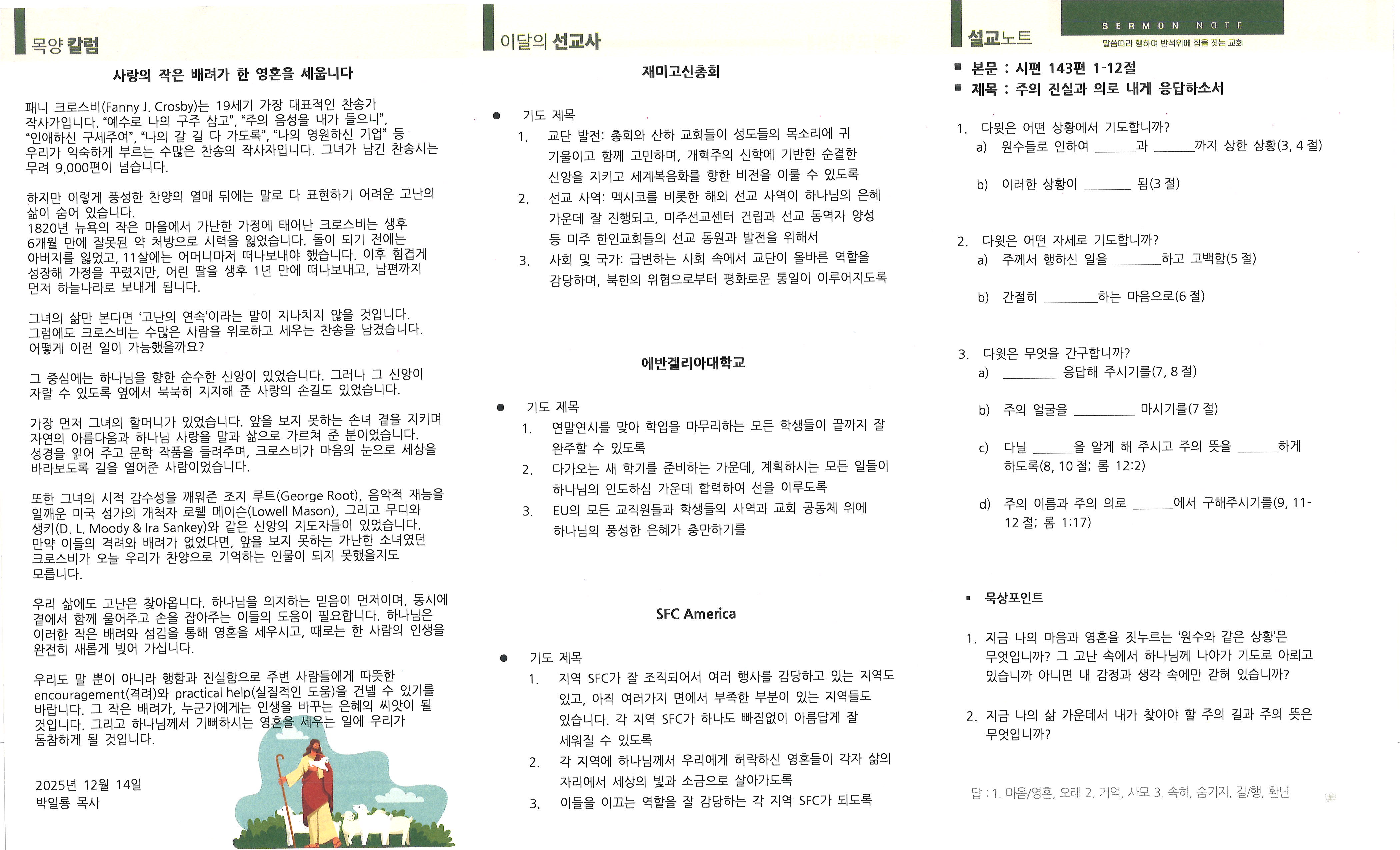 온라인 주보 [온라인 주보] 12월 14일 주보입니다 페이지 정보 작성자 : 로뎀장로교회 작성일 : 2025-12-13 조회수 : 165 목록 본문 12월 14일 주보입니다 이전글12월 21일 주보 25.12.20 다음글12월 7일 주보 25.12.06 LIST